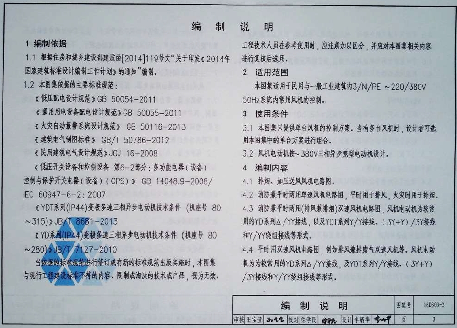 本图集适用于民用与一般工业建筑内3/N/PE~220/380V50Hz系统内常用风机的控制。
