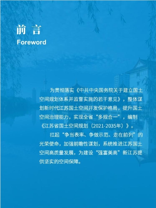 为贯彻落实《中共中央国务院关于建立国土空间规划体系并监督实施的若干意见》,整体谋划新时代江苏国土空间开发保护格局,提升国土空间治理能力,实现全省“多规合一”,编制《江苏省国土空间规划(2021-2035年)》.