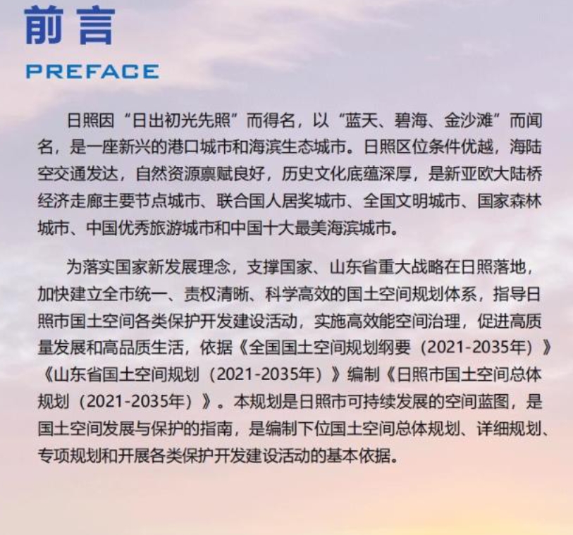日照因“日出初光先照”而得名,以“蓝天、碧海、金沙滩”而闻名,是一座新兴的港口城市和海滨生态城市。日照区位条件优越,海陆空交通发达,自然资源禀赋良好,历史文化底蕴深厚,是新亚欧大陆桥经济走廊主要节点城市、联合国人居奖城市、全国文明城市、国家森林城市、中国优秀旅游城市和中国十大最美海滨城市。
