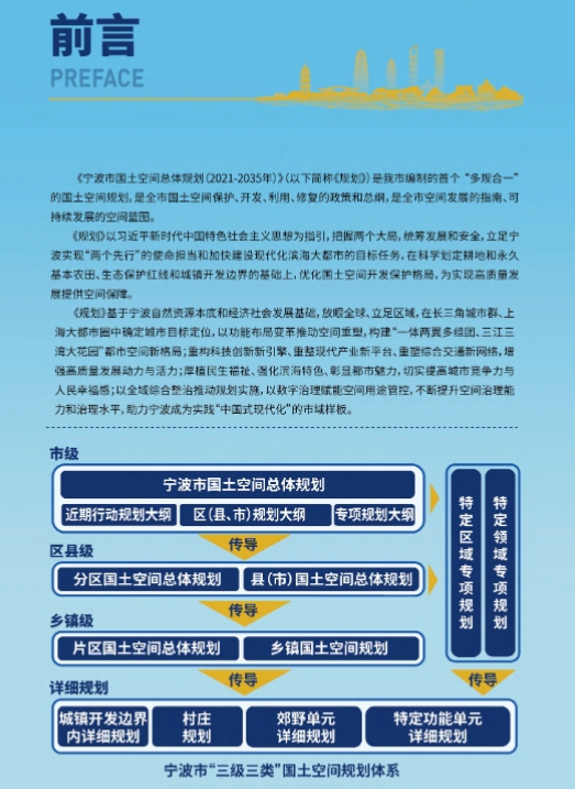 《宁波市国士空间总体规划(2021-2035年)》(以下简称《规划》是我市编制的首个“多规合一”的国土空间规划,是全市国土空间保护、开发、利用、修复的政策和总纲,是全市空间发展的指南、可持续发展的空间蓝图。