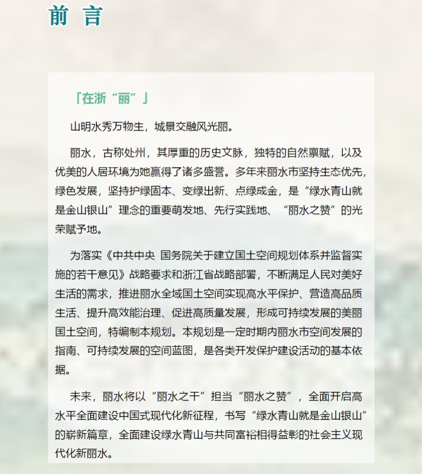 丽水古称处州其厚重的历史文脉独特的自然禀赋以及优美的人居环境为她赢得了诸多盛誉。多年来丽水市坚持生态优先绿色发展坚持护绿固本、变绿出新、点绿成金是绿水青山就是金山银山理念的重要萌发地、先行实践地、丽水之赞的光荣赋予地。