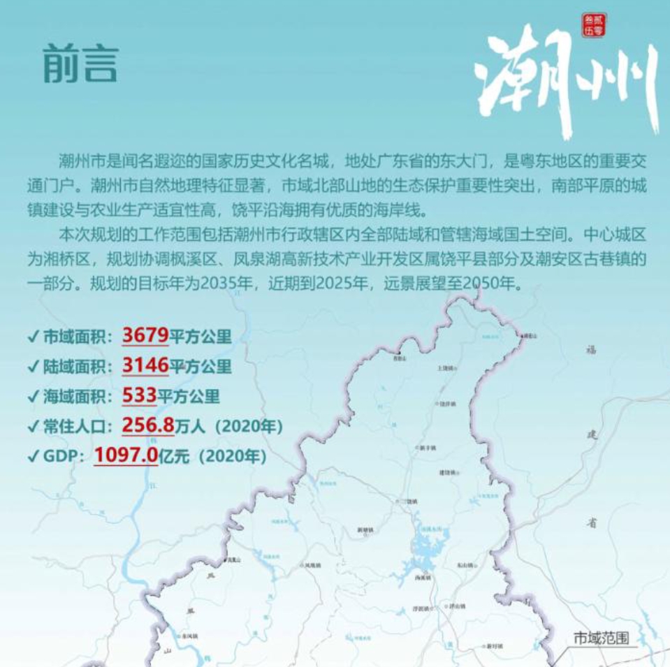 潮州市是闻名遐迩的国家历史文化名城,地处广东省的东大门,是粤东地区的重要交通门户。潮州市自然地理特征显著,市域北部山地的生态保护重要性突出,南部平原的城镇建设与农业生产适宜性高,饶平沿海拥有优质的海岸线。