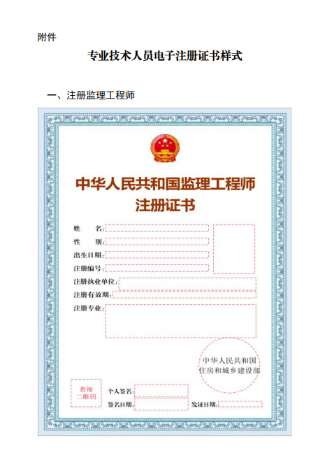 专业技术人员电子注册证书样式