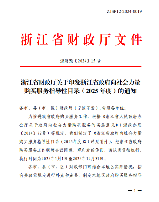 浙江省政府向社会力量购买服务指导性目录(2025年度)