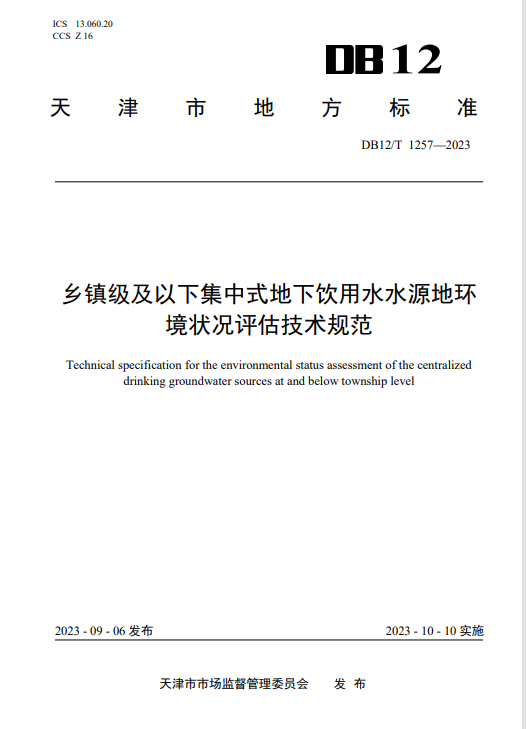 DB12/T 1257-2023 乡镇级及以下集中式地下饮用水水源地环境状况调查评估技术规范