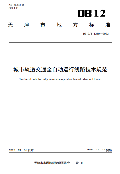 DB12/T 1260-2023《城市轨道交通全自动运行线路技术规范》