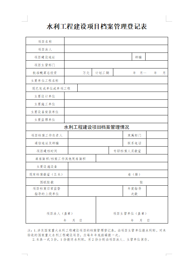 水利工程建设项目档案管理登记表
