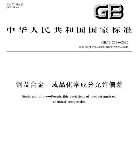 GB∕T 222-2025 钢及合金 成品化学成分允许偏差