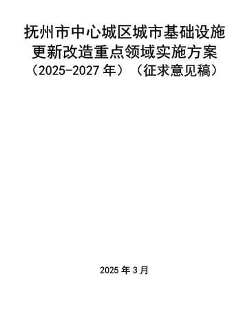 《抚州市中心城区城市基础设施更新改造重点领域实施方案(2025-2027年)》征求意见稿