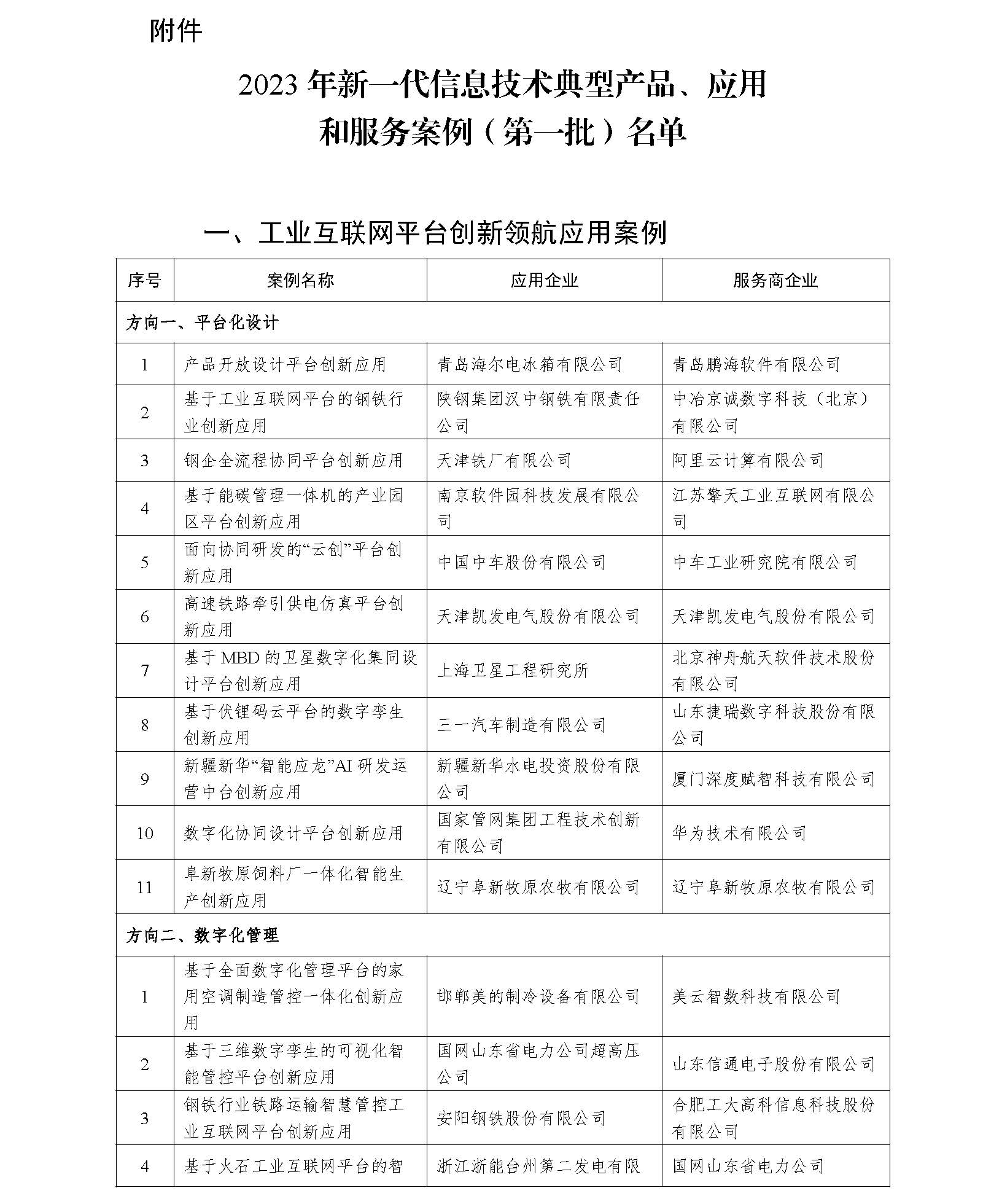 附件:2023年新一代信息技术典型产品、应用和服务案例(第一批)名单