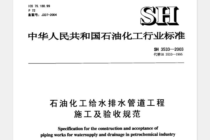 SH3533-2003 石油化工给水排水管道工程施工及验收规范主要包含以下内容: