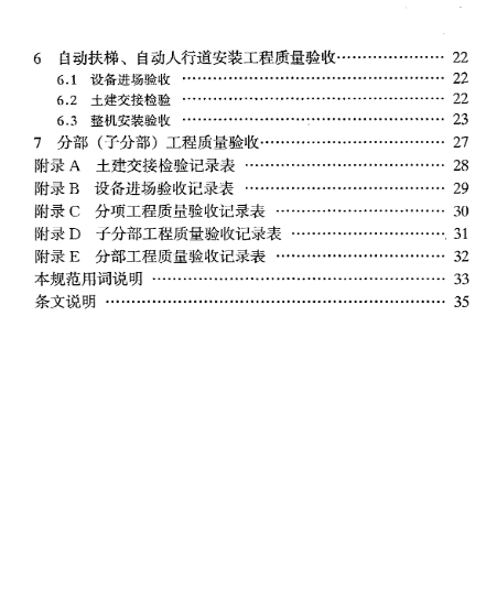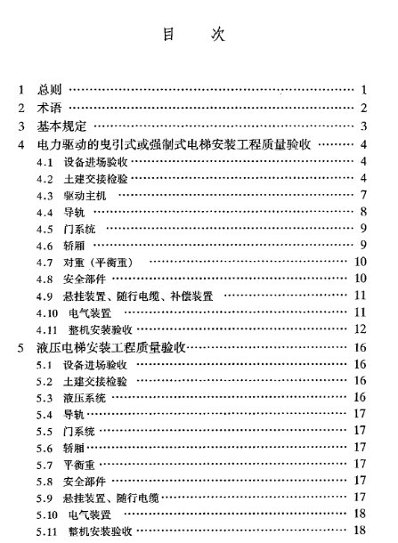 本规范适用于电力驱动的曳引式或强制式电梯、液压电梯、自动扶梯和自动人行道安装工程质量的验收;本规范不适用于杂物电梯安装工程质量的验收。