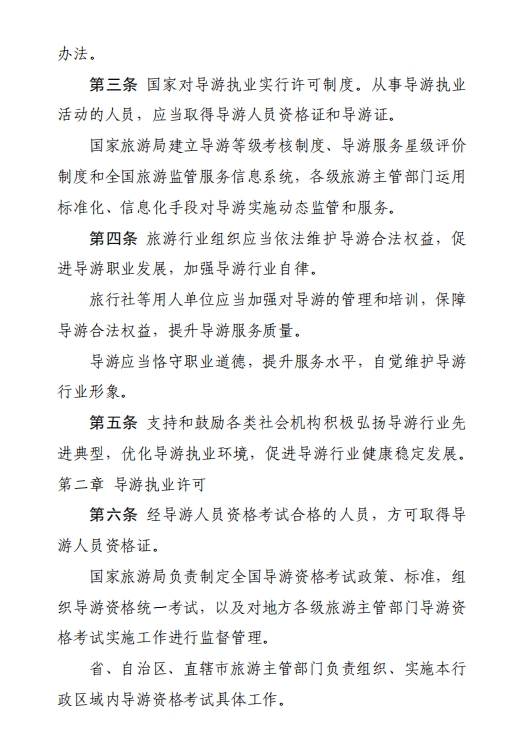 为规范导游执业行为,提升导游服务质量,保障导游合法权益,促进导游行业健康发展,依据《中华人民共和国旅游法》《导游人员管理条例》和《旅行社条例》等法律法规,制定本办法。