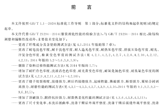 GB/T 21294-2024 服装理化性能的检验方法描述了服装产品理化性能的测定方法