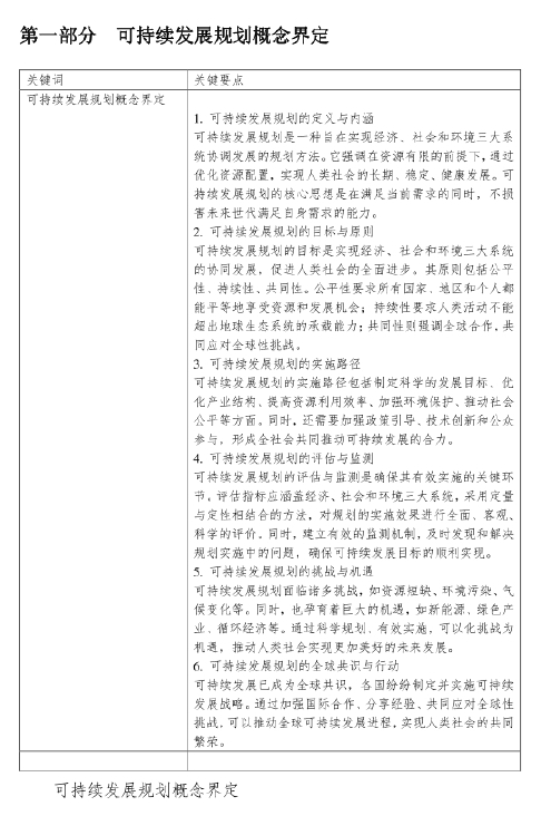 可持续发展规划是一种旨在实现经济、社会和环境三大系统协调发展的规划方法。它强调在资源有限的前提下,通过优化资源配置,实现人类社会的长期、稳定、健康发展。可持续发展规划的核心思想是在满足当前需求的同时,不损害未来世代满足自身需求的能力。