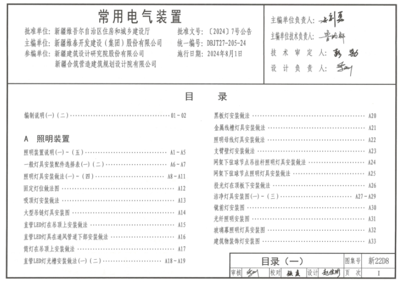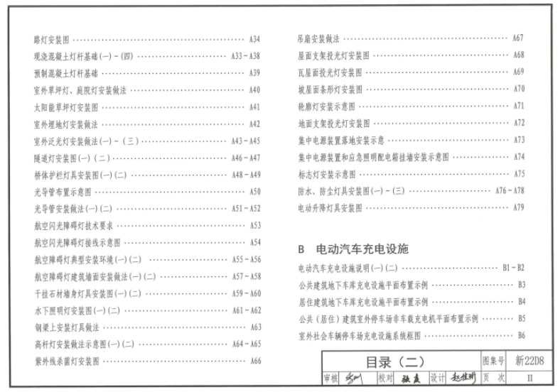 新22D8 常用电气装置包括照明装置、电动汽车充电设施、建筑一体化光伏安装及其他用电设备四部分内容。