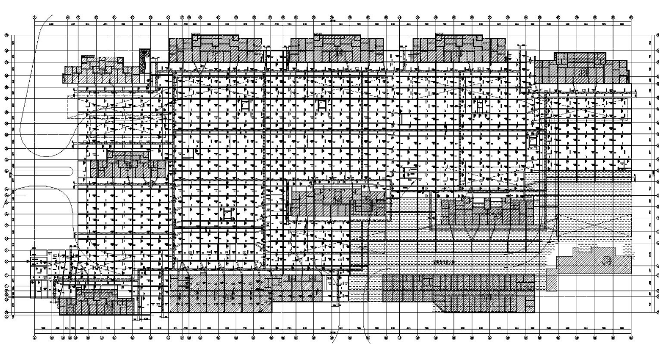 框架剪力墙结构地下车库施工图包括:结构设计总说明、地下车库顶板配筋图、地下室顶板梁平法施工图、基础布置图等。