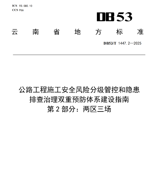 DB53T+1447.2-2025+公路工程施工安全风险分级管控和隐患排查治理双重预防体系建设指南+第2部分:两区三场