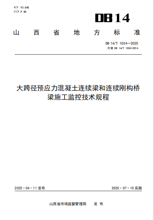 DB14/T 1034-2025 大跨径预应力混凝土连续梁和连续刚构桥梁施工监控技术规程