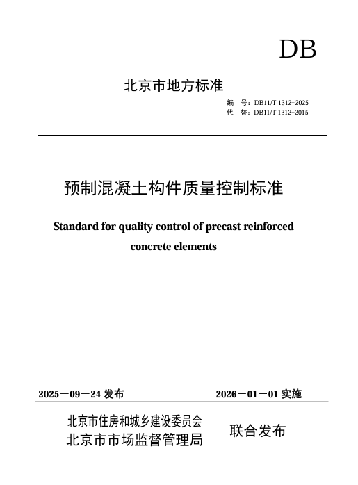 DB11/T 1312-2025 预制混凝土构件质量控制标准