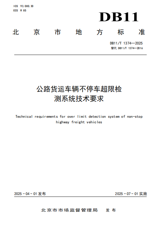 DB11/T 1374-2025 公路货运车辆不停车超限检测系统技术要求