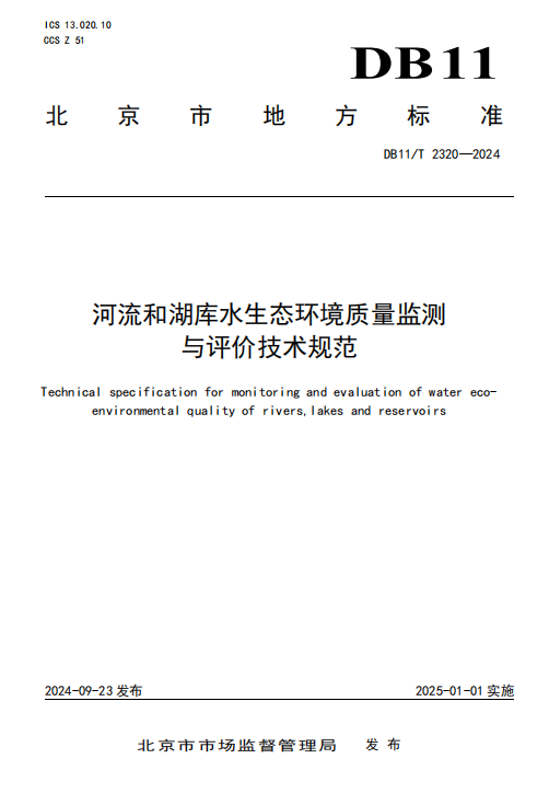 DB11/T 2320-2024 河流和湖库水生态环境质量监测与评价技术规范