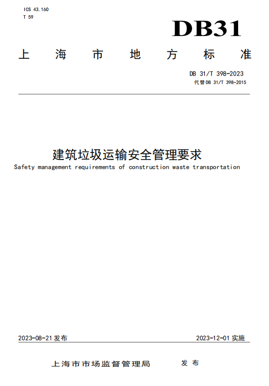 DB31/T 398-2023 建筑垃圾运输安全管理要求