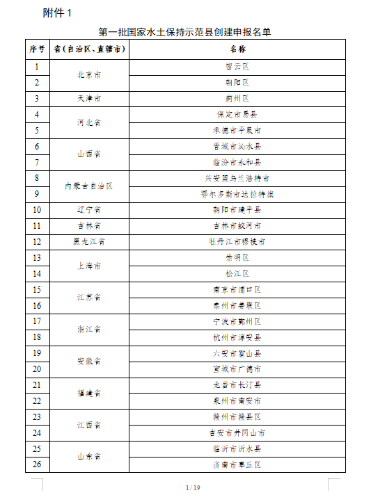 第一批国家水土保持示范创建申报名单