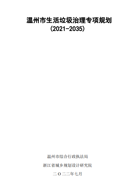 温州市生活垃圾治理专项规划 (2021-2035年)